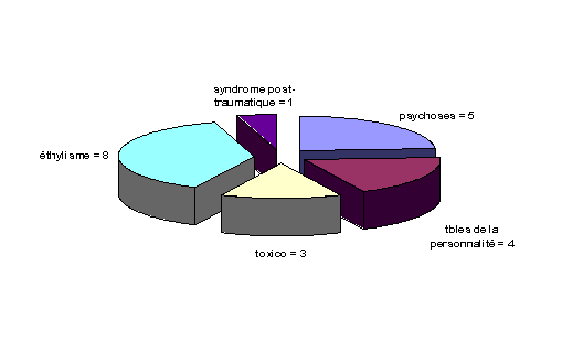 Une indication peut également nous être donnée par la répartition en fonction du diagnostic des S.D.F hospitalisés à temps plein en 1998 au Secteur 4.